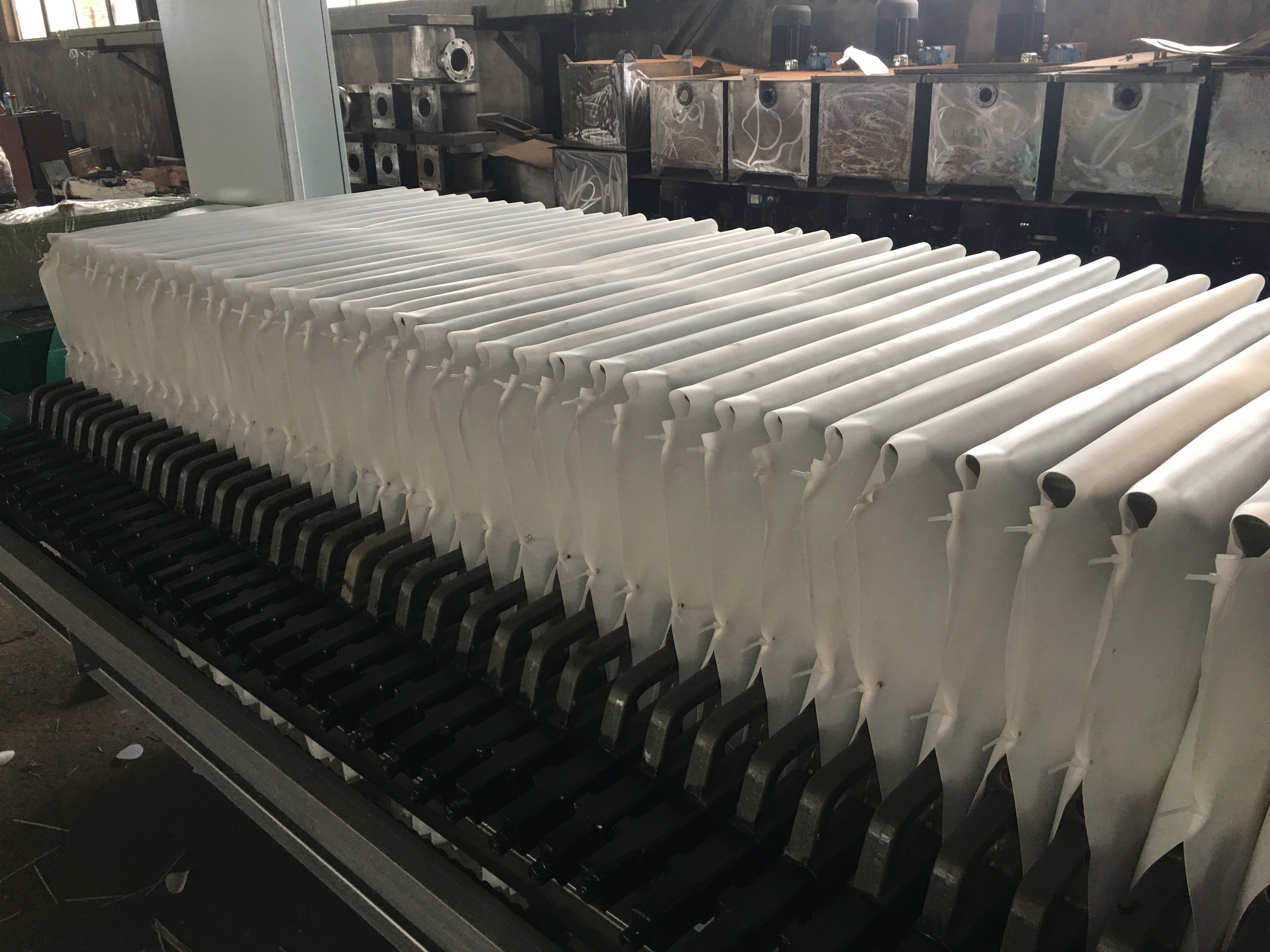 我們從新買(mǎi)回來(lái)的濾板必要的條件就是和原始設(shè)備的配套濾板尺寸基本相同,這些條件包括,濾板長(zhǎng)度,寬度和厚度,如果有偏差就是導(dǎo)致濾板擱放在設(shè)備橫梁時(shí),在過(guò)濾時(shí)左右移動(dòng),甚至有可能放不上去,從而嚴(yán)重影響的壓濾機(jī)的整體運(yùn)行。